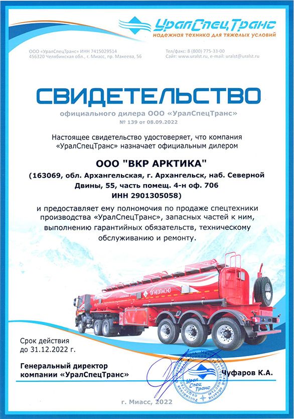 ВКР Арктика - официальный дилер ООО "УралСпецТранс"